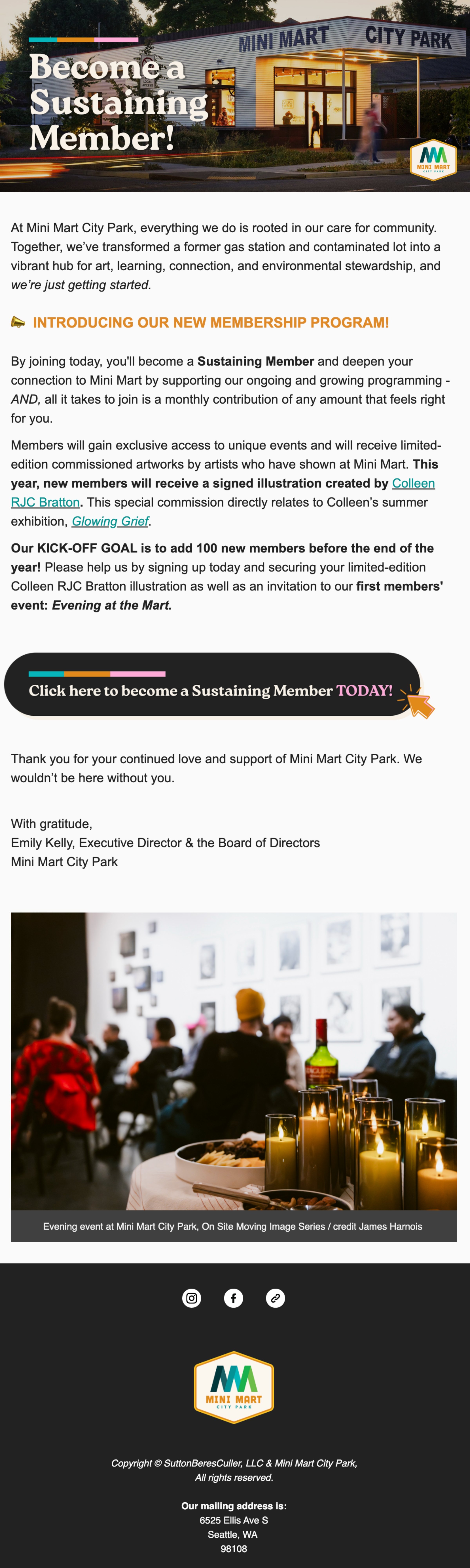 This collection of marketing materials includes social posts, promotional posters, and email assets—all created to support Mini Mart’s exhibitions and events.